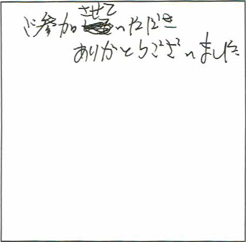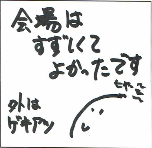 久しぶりの参加でしたが、スタッフの方々、会場の雰囲気もよく、活力を得る事が出来ました。ありがとうございました。
