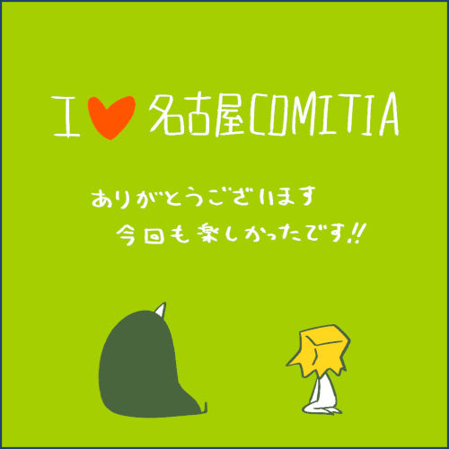 名古屋COMITIAスタッフ様、本日はお疲れ様でございました。おかげで気持ち良くサークル参加できました。